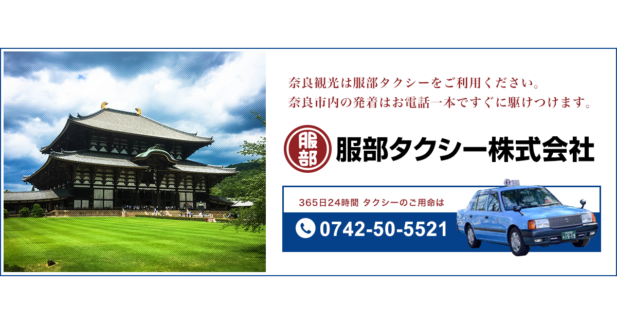 近鉄タクシーなどと並んで有名なタクシー会社としては、「服部タクシー」と呼ばれる会社があります。こちらも観光タクシーなどの事業を行っており、近鉄奈良駅などに乗り入れる主要なタクシー会社として地元ではよく知られています。